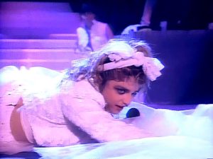 Madonna. In a wedding dress. On the floor. Legs spread. Garter flashing. Humping the stage like she was trying to get pregnant through sheer willpower.