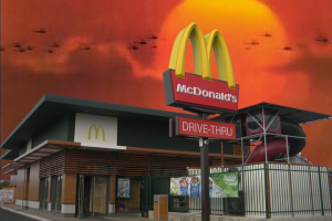 And then there was so much piss, mixed with the broken McNugget sauces because my piss was getting on the Volvo and washing the sauces on to the ground and they’re mostly soybean oil-based so it was like one big, pissy oil slick and everyone was slipping and sliding in piss and McNugget sauce.