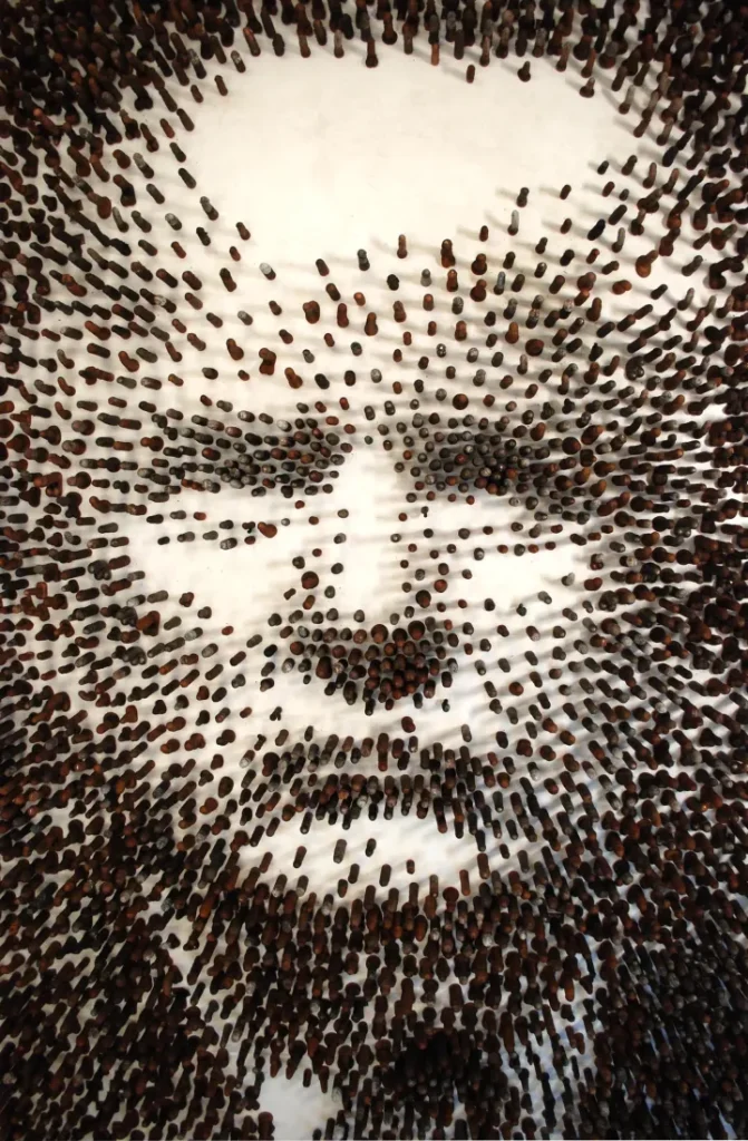 Originally conceived during Trump’s first term, Manka’s portrait is composed entirely of salvaged industrial dildos — artifacts of Cleveland’s historic connection to sex toy manufacturing. The piece was both a playful jab and a pointed political statement, but now, in 2025, it feels less like satire and more like a monument in the most literal sense.